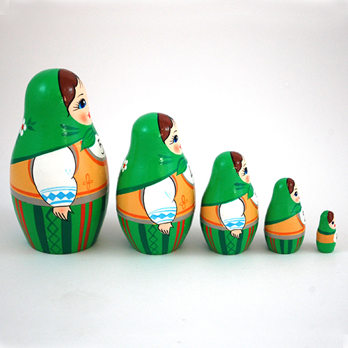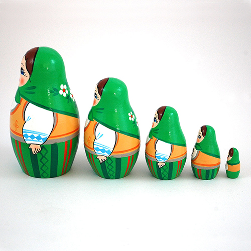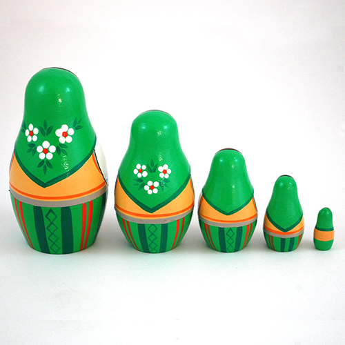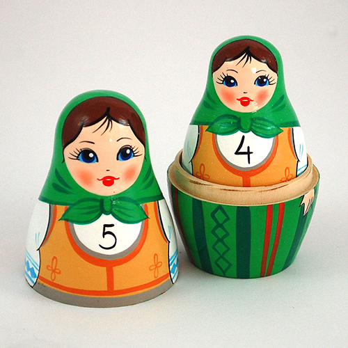 Five attractive and brightly painted nesting dolls help young children lean the concept of counting. The dolls are numbered from 1 to 5. The smallest doll, like the smallest number, has a "one." painted on its back. Each successive doll has a different number. When all the dolls are nested together they have a value of...five! And children can open the dolls and see that there really are five dolls within. And if only part of the dolls set is used, they can see how the number three corresponds to three dolls that are nested within each other. Great as a regular nesting doll too. Three and a half inches tall. Handpainted and handlathed. No two are alike. Below Amazon pricing: $21.00— ships for FREE! Please note: These are not cheap Chinese copies: poorly painted and made of uncured wood, which quickly warps or splits. In every way, these are authentic Russian nesting dolls. They are also shipped within 24 hours from our warehouse in the USA...not weeks later from Belarus or Russia. |
