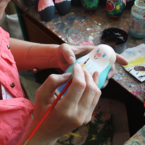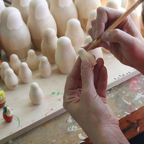 These blanks are then handpainted by a team of unbelievably talented women. And it is always women who do the painting (men, we are told, don't have the patience required). VIDEO: See the women paint these beautiful dolls (click here) |
