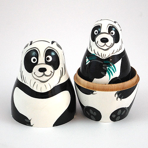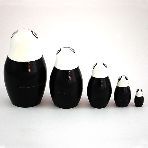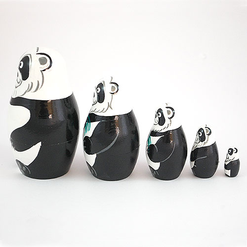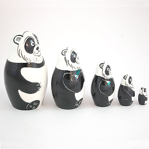 Five cute charming panda bears are enjoying a meal of bamboo shoots. A wonderful collectible for panda lovers. Cute and humorous expressions. Painted in bold colors. Handlathed and handpainted Russian nesting doll set. Three and a half inches tall. Below Amazon pricing: $21.00—with FREE shipping! Please note: These are not cheap Chinese copies: poorly painted and made of uncured wood (which quickly warps or splits). In every way, these are authentic Russian nesting dolls. They are also shipped within 24 hours from our warehouse in the USA...not weeks later from Belarus or Russia. |